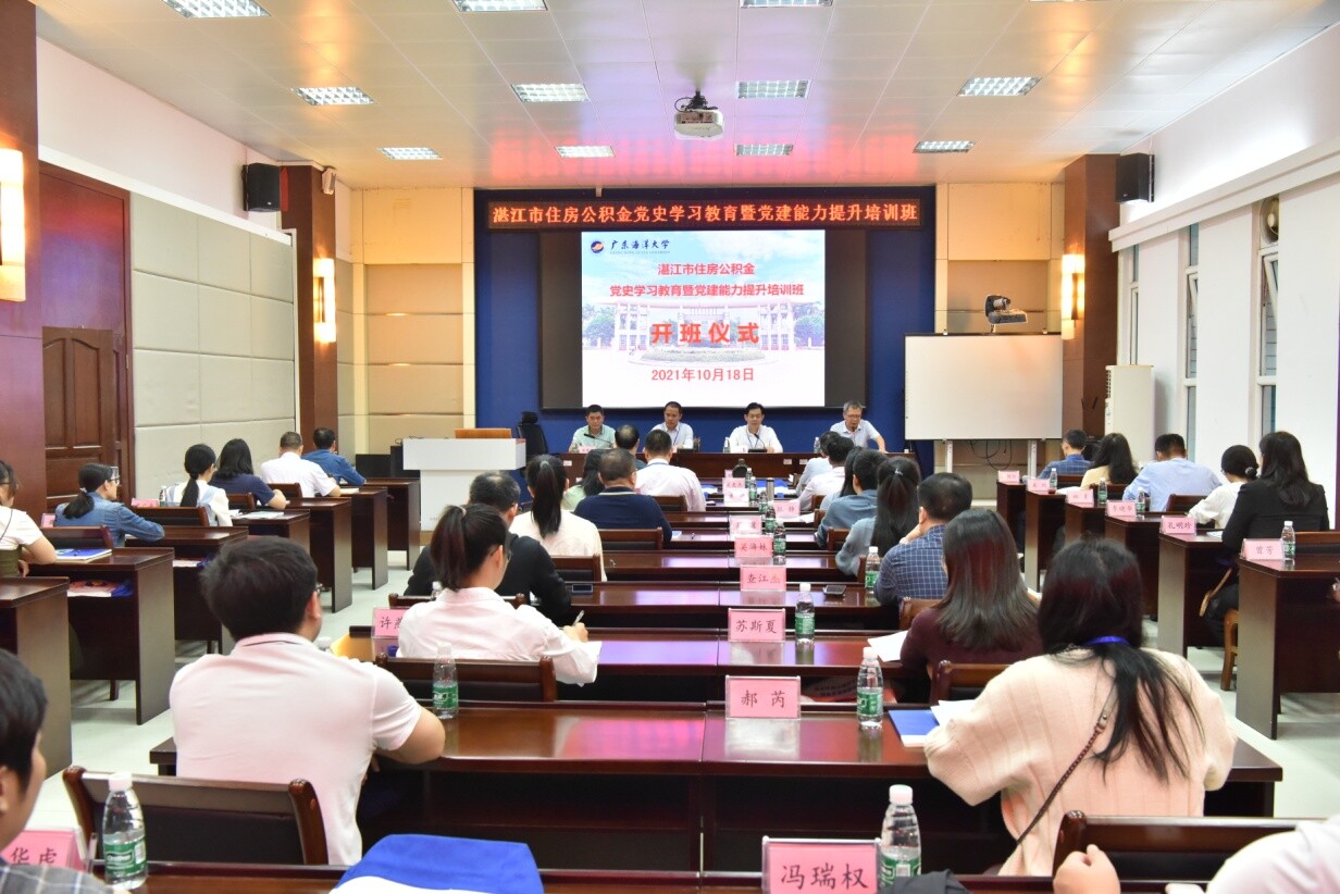 为深入学习贯彻习近平总书记在党史学习教育动员大会和庆祝中国共产党成立100周年大会的重要讲话精神,进一步推进中心党史学习教育走深走实,提升中心党建工作能力,以党建工作高质量发展引领各项业务工作高质量发展,2021年10月中下旬,市住房公积金中心在广东海洋大学举办党史学习教育暨党建能力提升培训班。本期培训分两期进行,市住房公积金中心干部、职工约90人参加。