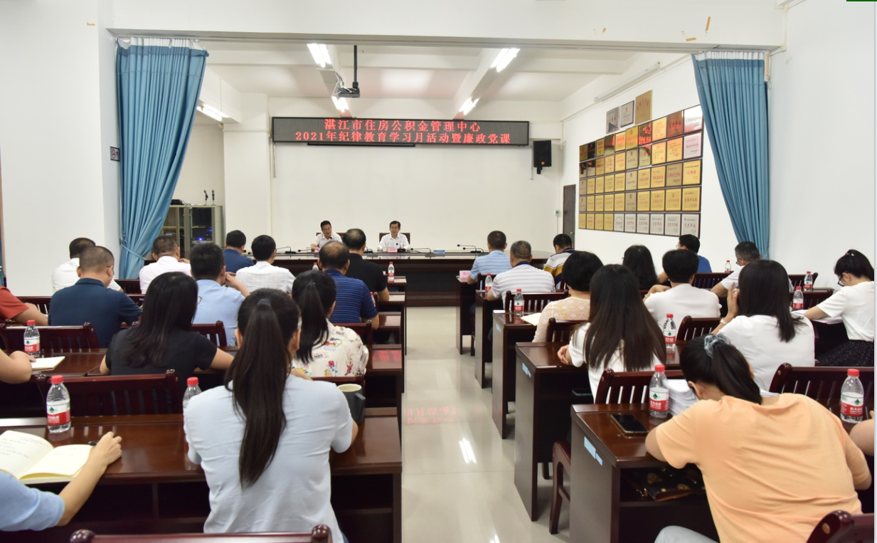 10月9日上午,市纪委派驻市住建局纪检组组长黎木荣同志来到市住房公积金中心,以“认清形势,严守规矩,全力保障人民群众安居乐业”为主题,给市中心全体党员、干部职工上2021年纪律教育学习月活动暨廉政党课。
