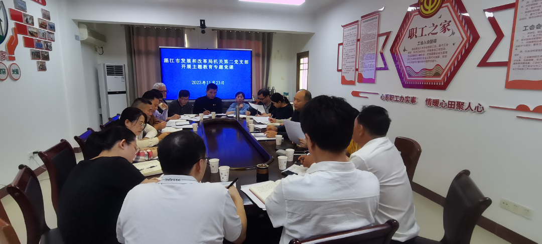 为深入开展学习贯彻习近平新时代中国特色社会主义思想主题教育,11月23日下午,湛江市发展和改革局第二党支部在局4楼会议室开展主题教育专题党课。会议由党支部副书记刘夏冰同志主持,第二党支部全体党员及相关科室人员参加会议。