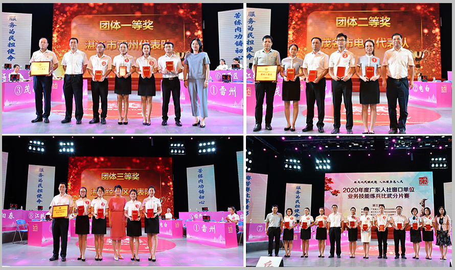 经过激烈角逐,湛江雷州市代表队、茂名市电白区代表队、湛江经济技术开发区代表队分别获得团体一、二、三等奖,成功晋级省内赛;同时评选出本赛区“最佳风采奖”选手9名。湛江市派出参与比赛的3支队伍取得佳绩,其中雷州市代表队和湛江经济技术开发区代表队喜获晋级省内赛资格,麻章区代表队获得第4名。省人力资源和社会保障厅党组成员、驻厅纪检监察组组长苏清红,湛江市人民政府副秘书长张建文,湛江市人力资源和社会保障局党组书记、局长黄真窦以及阳江、茂名、湛江市人力资源和社会保障局分管领导分别给予获奖团队和获奖选手颁奖。