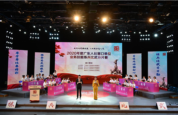 7月30日,2020年度广东人社窗口单位业务技能练兵比武活动分片赛(湛江赛区)在湛江市圆满举行,来自阳江、茂名、湛江3市9支代表队同台竞技,精彩纷呈,尽展人社干部队伍风采。省人力资源和社会保障厅党组成员、驻厅纪检监察组组长苏清红,省人力资源和社会保障厅二级巡视员林景青以及湛江、阳江、茂名市人社系统领导及干部职工参加了活动。