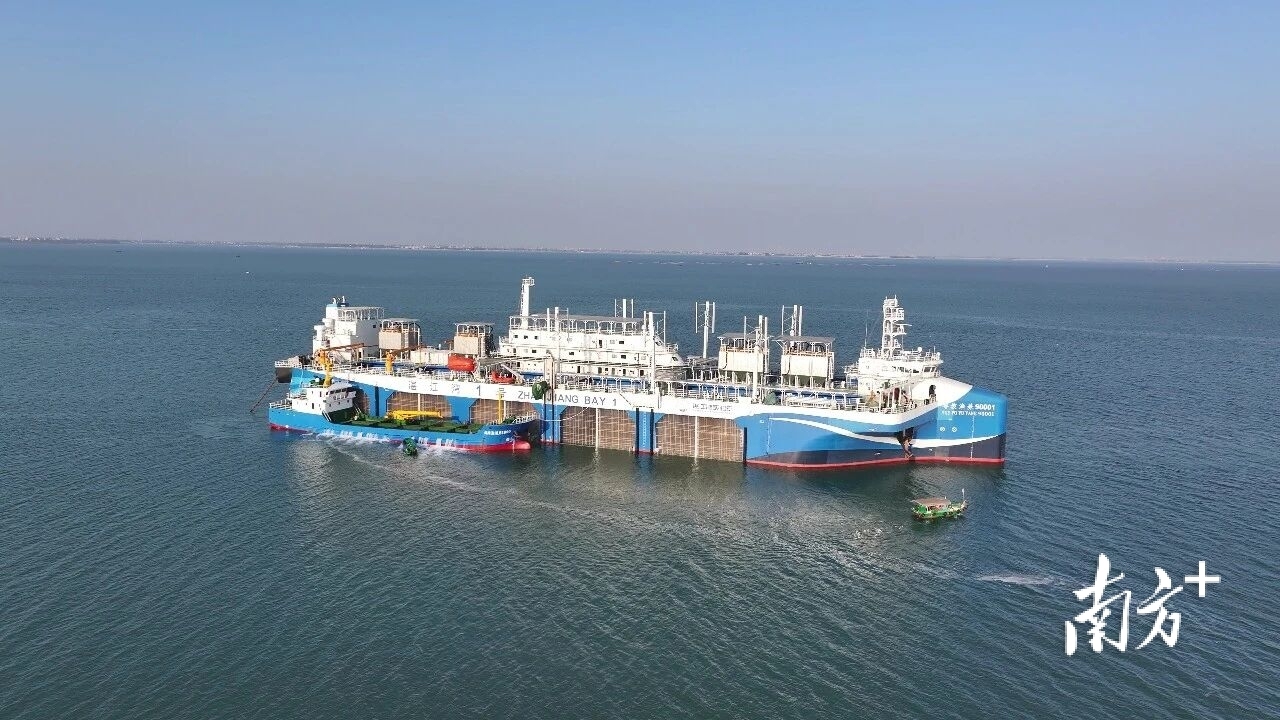 在硇洲岛外的浩瀚海面上,一座“海上城堡”巍然矗立。全球首创的漂浮式养殖平台“湛江湾1号”上,一颗强大的“AI大脑”正掌管着40万斤赤嘴鮸鱼苗养殖工作。