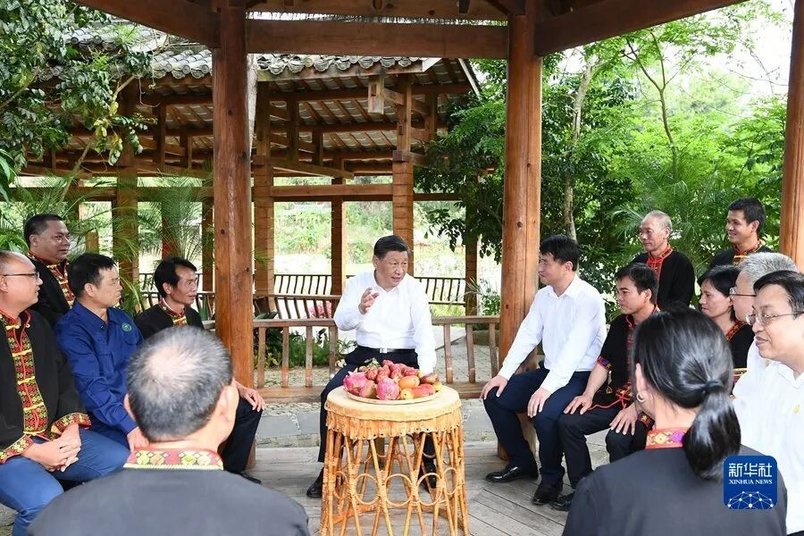 4月10日至13日,中共中央总书记、国家主席、中央军委主席习近平在海南考察。这是11日下午,习近平在五指山市水满乡毛纳村同村民们亲切交流。新华社记者 谢环驰 摄