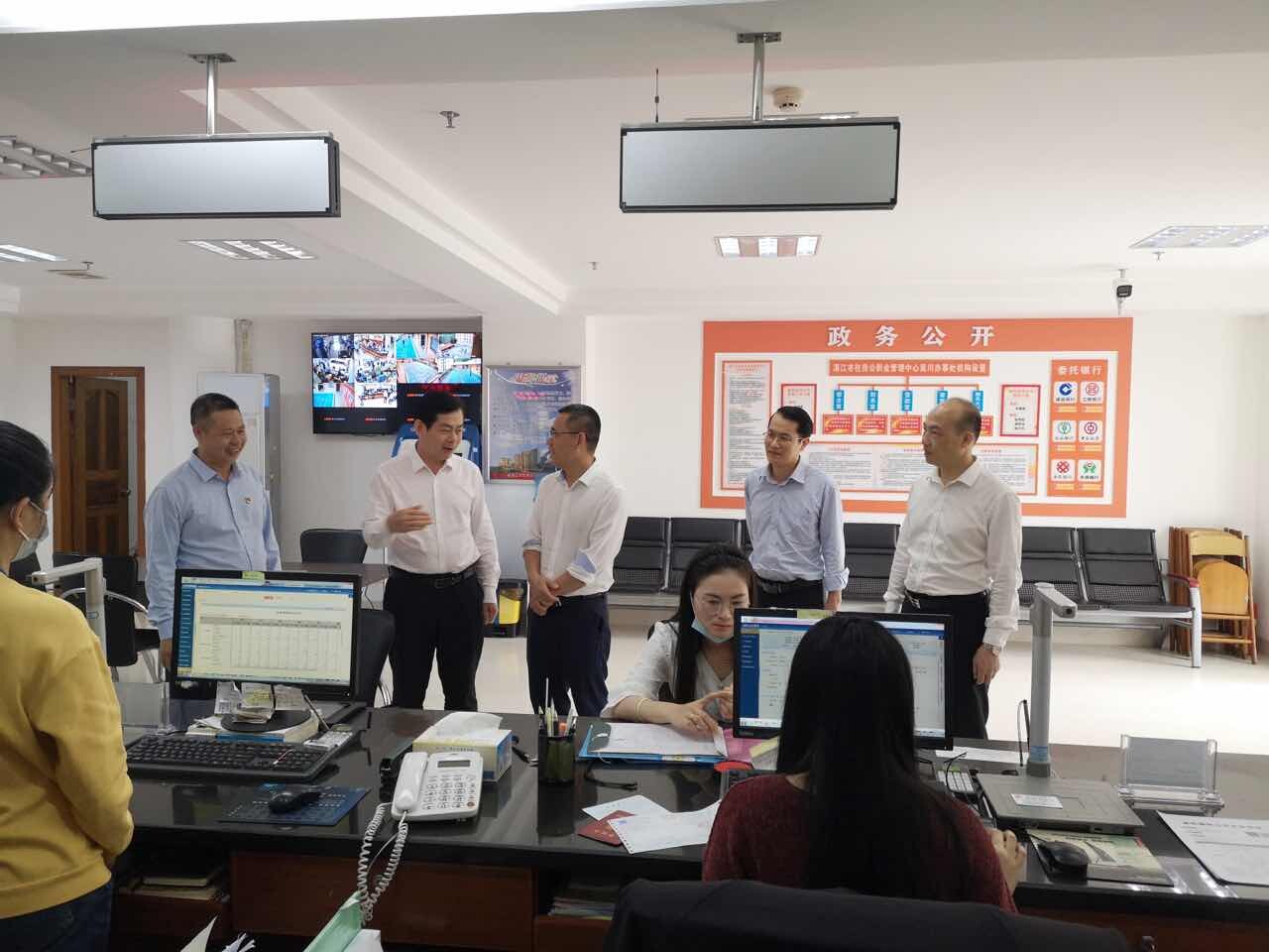 3月22日,吴川市委常委、常务副市长柯造,市住房公积金中心党组书记、主任邓世亮到市住房公积金中心吴川办事处调研指导工作,综合科科长吴兴智,吴川办事处主任郑建鹏,中国建设银行吴川支行行长万杰等陪同调研。