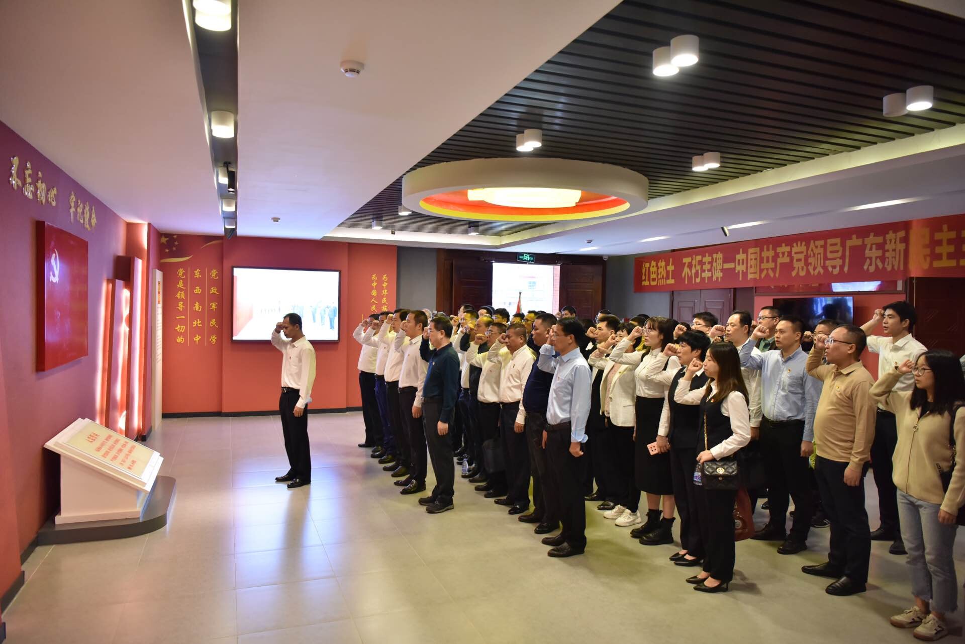 接着,党员们在初心堂,由中国工商银行湛江分行党委书记、行长徐海燕同志领誓,面对党旗,重温入党誓词,追忆入党初心。